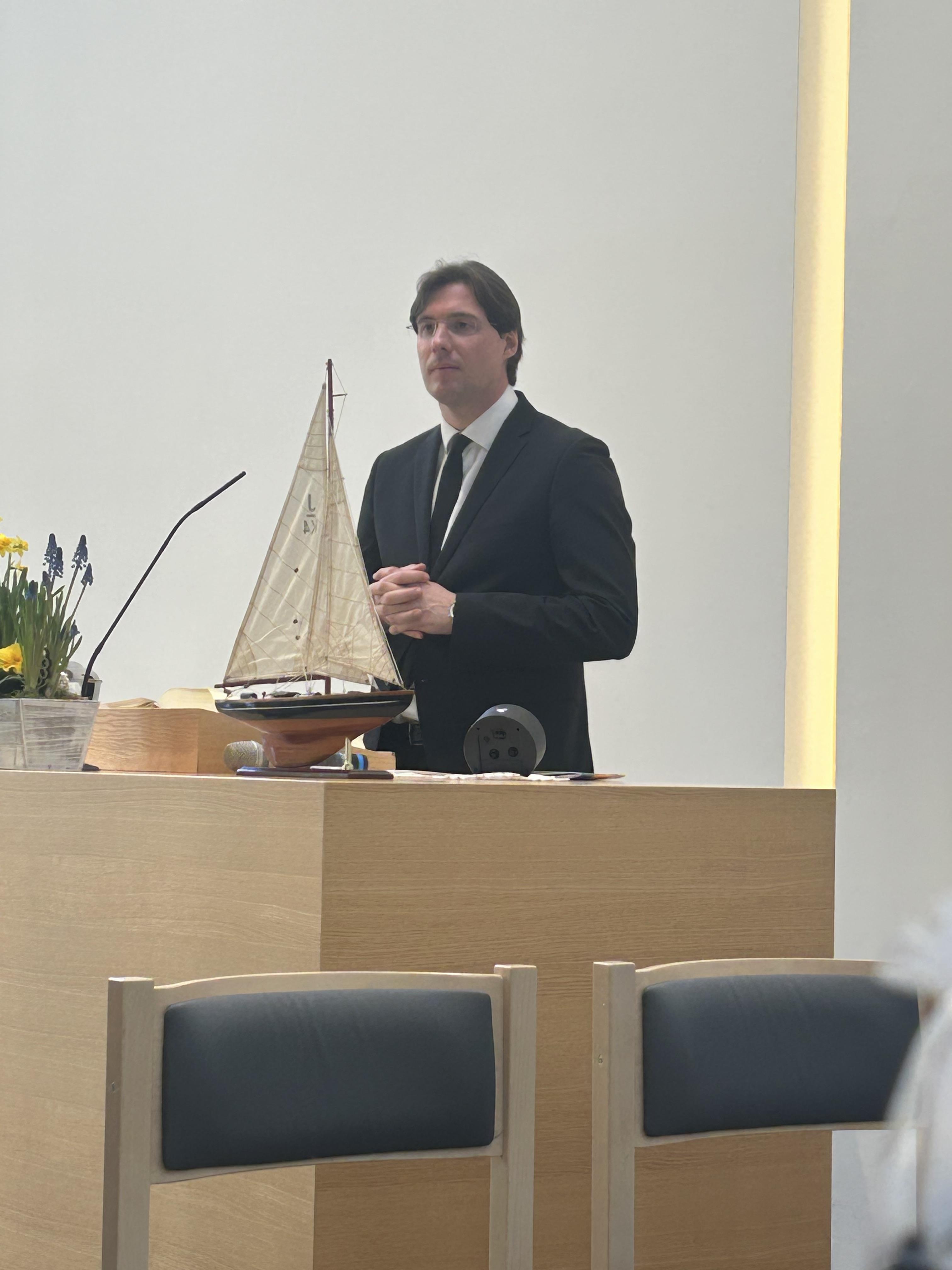 Unser Bezirkskinderbeauftragte Priester Marc-Andre Lang diente mit dem Wort aus Lukas 5 Vers 3: Da stieg er in eines der Boote, das Simon gehörte, und bat ihn, ein wenig vom Land wegzufahren. Und er setzte sich und lehrte die Menge vom Boot aus. Bezugnehmend auf das Textwort kamen viele Antworten aus den Reihen der Kinder, was es für eine Bootsfahrt so alles braucht. Vom Steuerrad über Segel bis hin zur Mannschaft war alles dabei. So lenkte Priester Lang den Blick der Kinder auch darauf, dass wir auch Gott immer mit in unser Boot und auf unsere Fahrt nehmen sollen. Und auch wenn wir mal Schiffbruch erleiden ist Gott da und hilft uns.