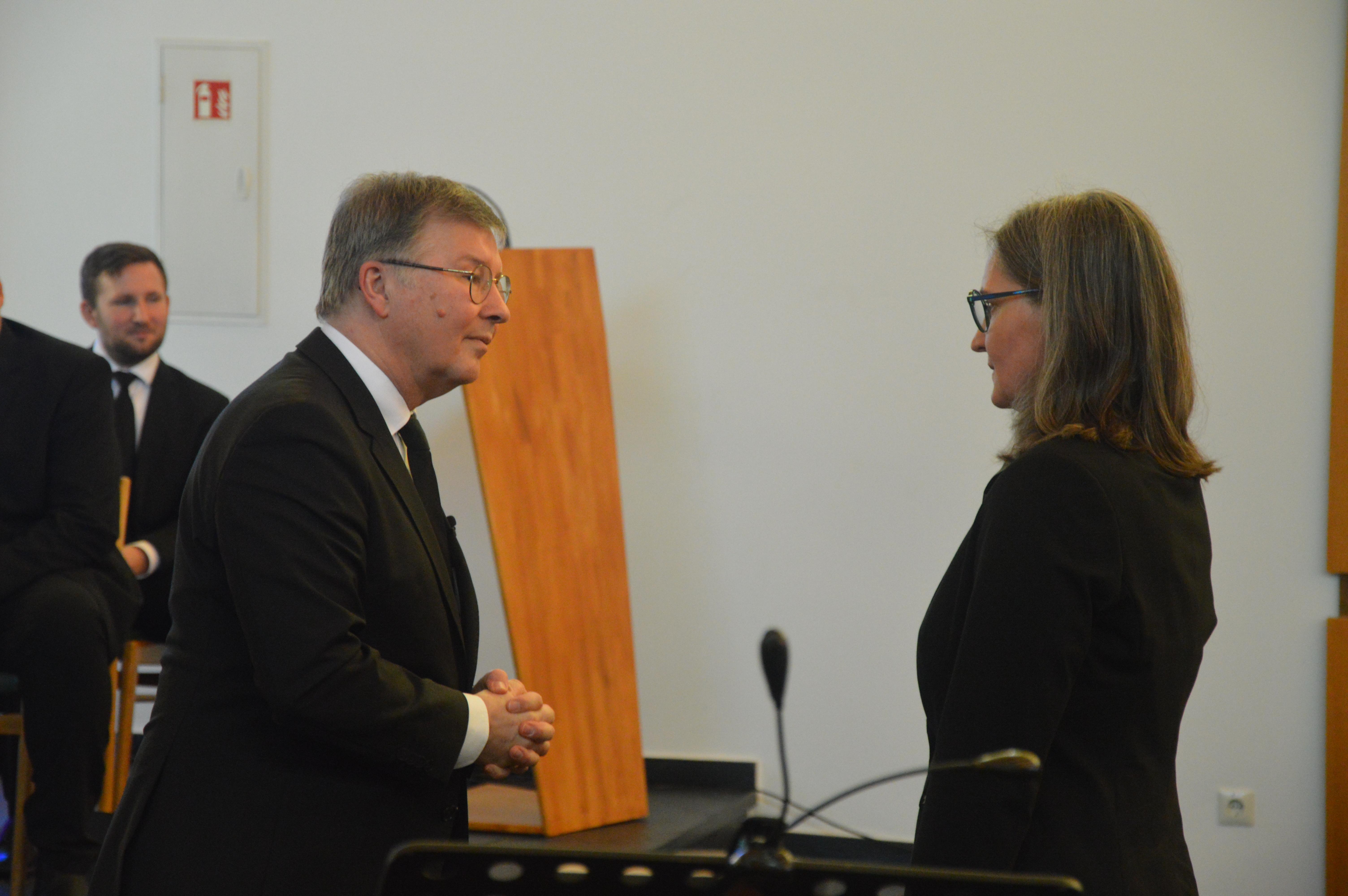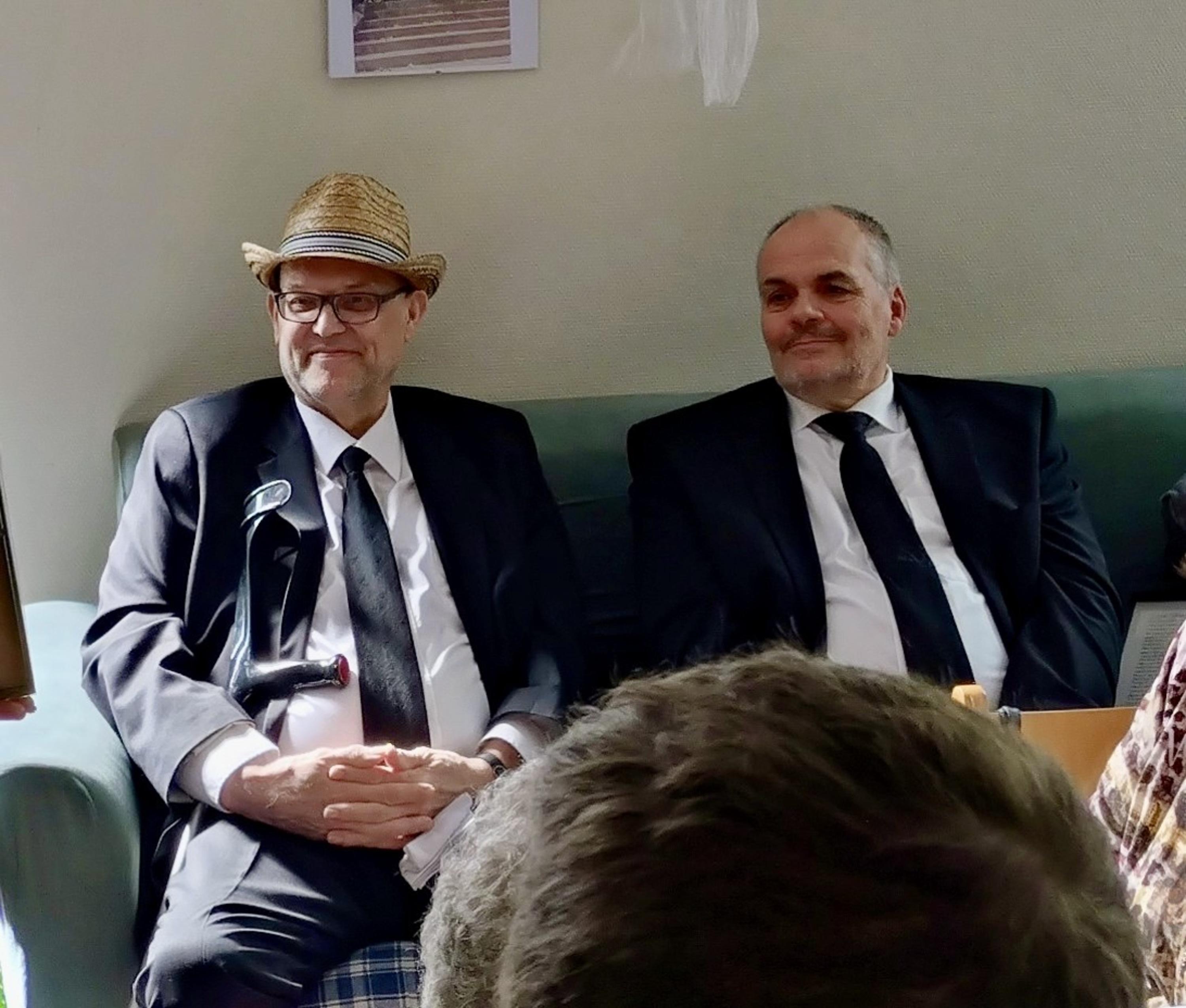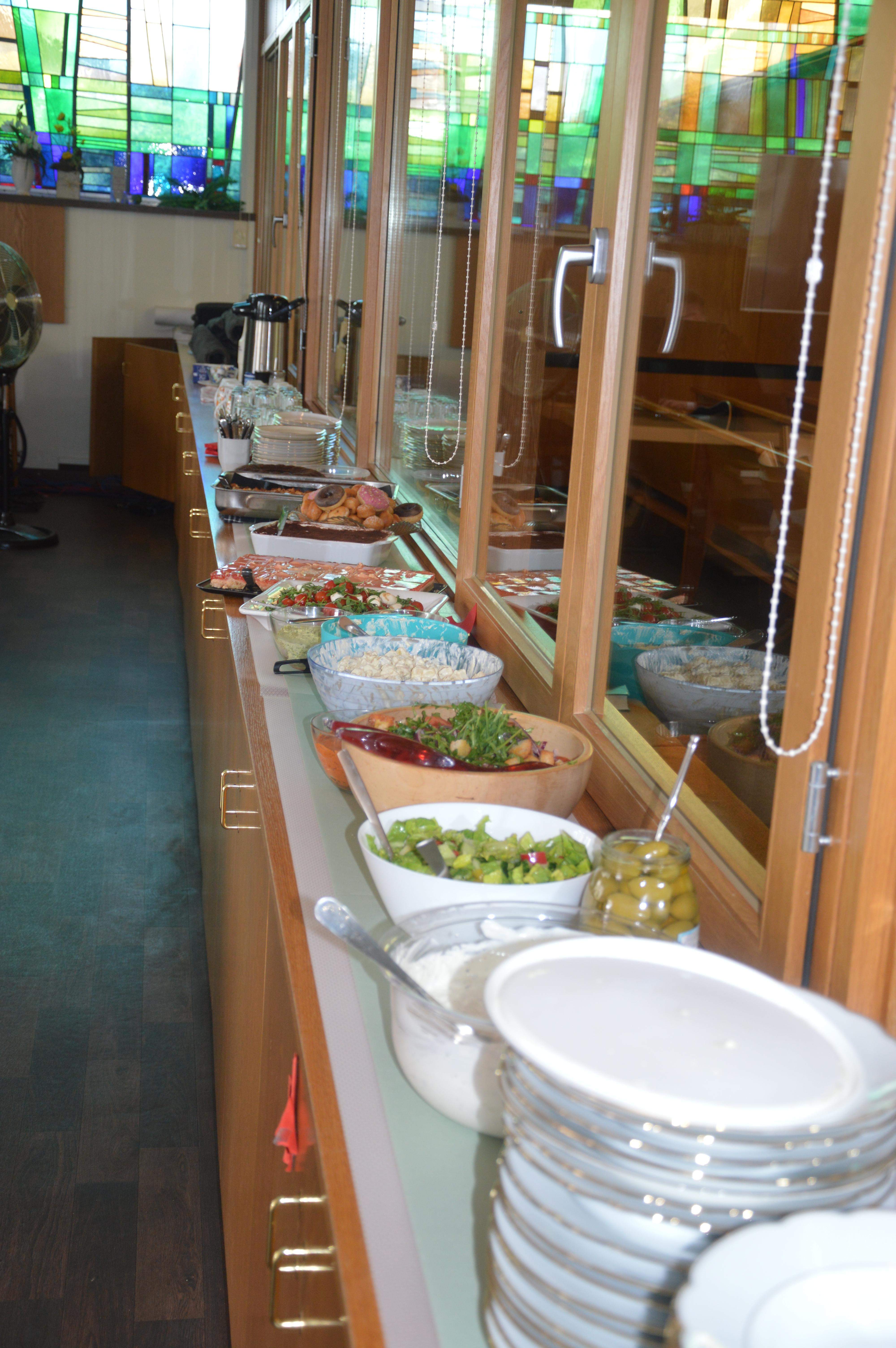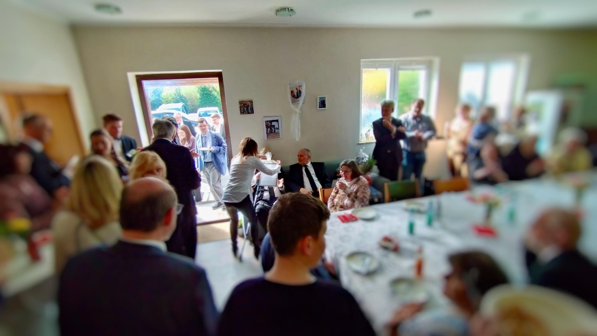 Das Ende des Gottesdienstes war für die meisten Anwesenden noch kein Grund, den Heimweg anzutreten, denn natürlich war für alle von fleißigen Händen noch Speis und Trank vorbereitet worden. Im Gemeinschaftsraum der Kirche fand dann auch die Übergabe der Geschenke und Blumen an die frischgebackenen Ruheständler statt, die beide persönlich verfasste Zeilen vorgetragen und überreicht bekamen.