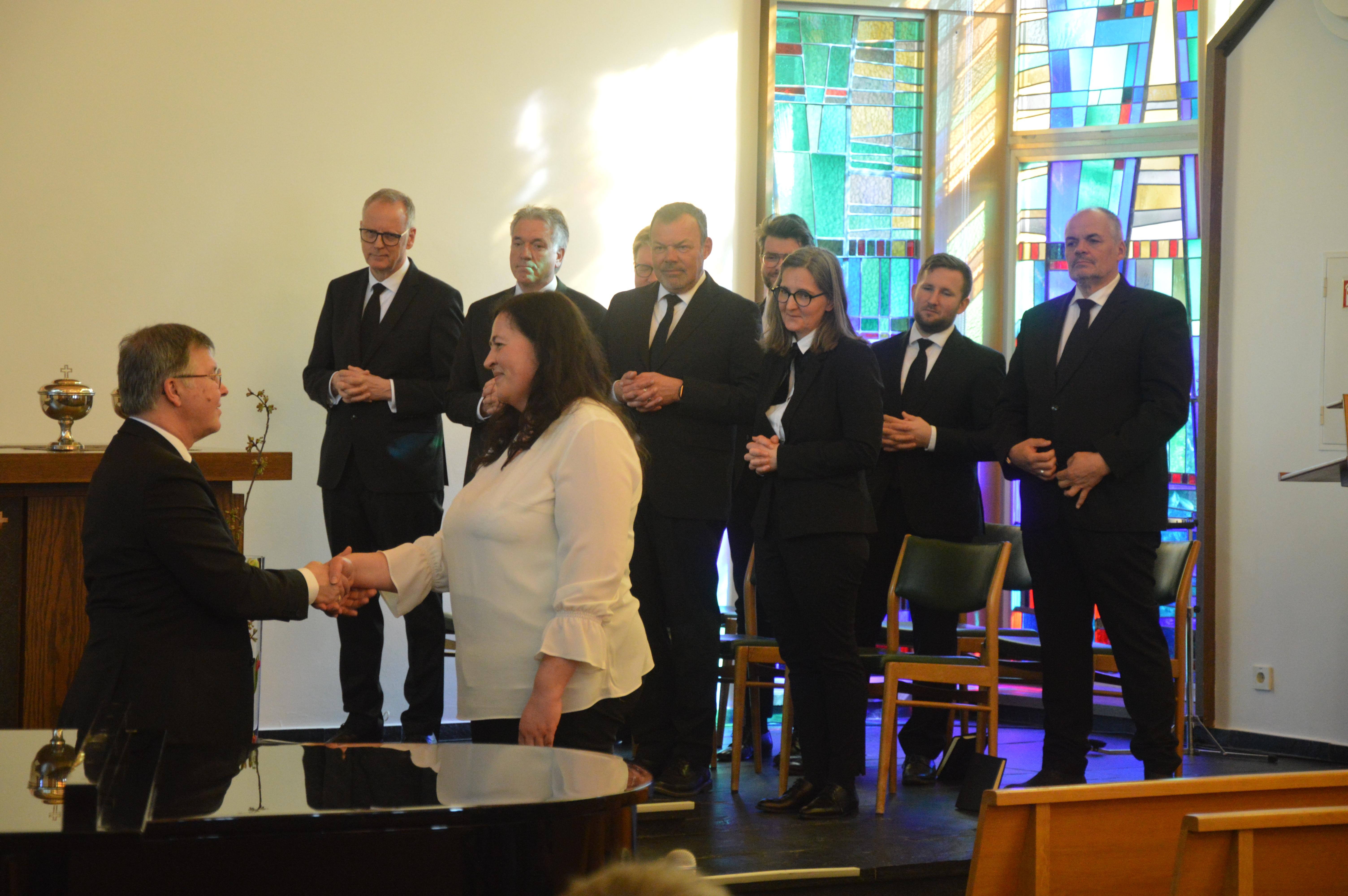 Um die dadurch entstandene Lücke zu schließen wurde direkt im Anschluss unsere Priesterin Antje Hueck als neue Gemeindevorsteherin beauftragt. Dabei bestätigte der Apostel, dass Antje Hueck von Gott für diese Aufgabe erbeten worden sei und widmete ihrer Vorstehertätigkeit den 103. Psalm.